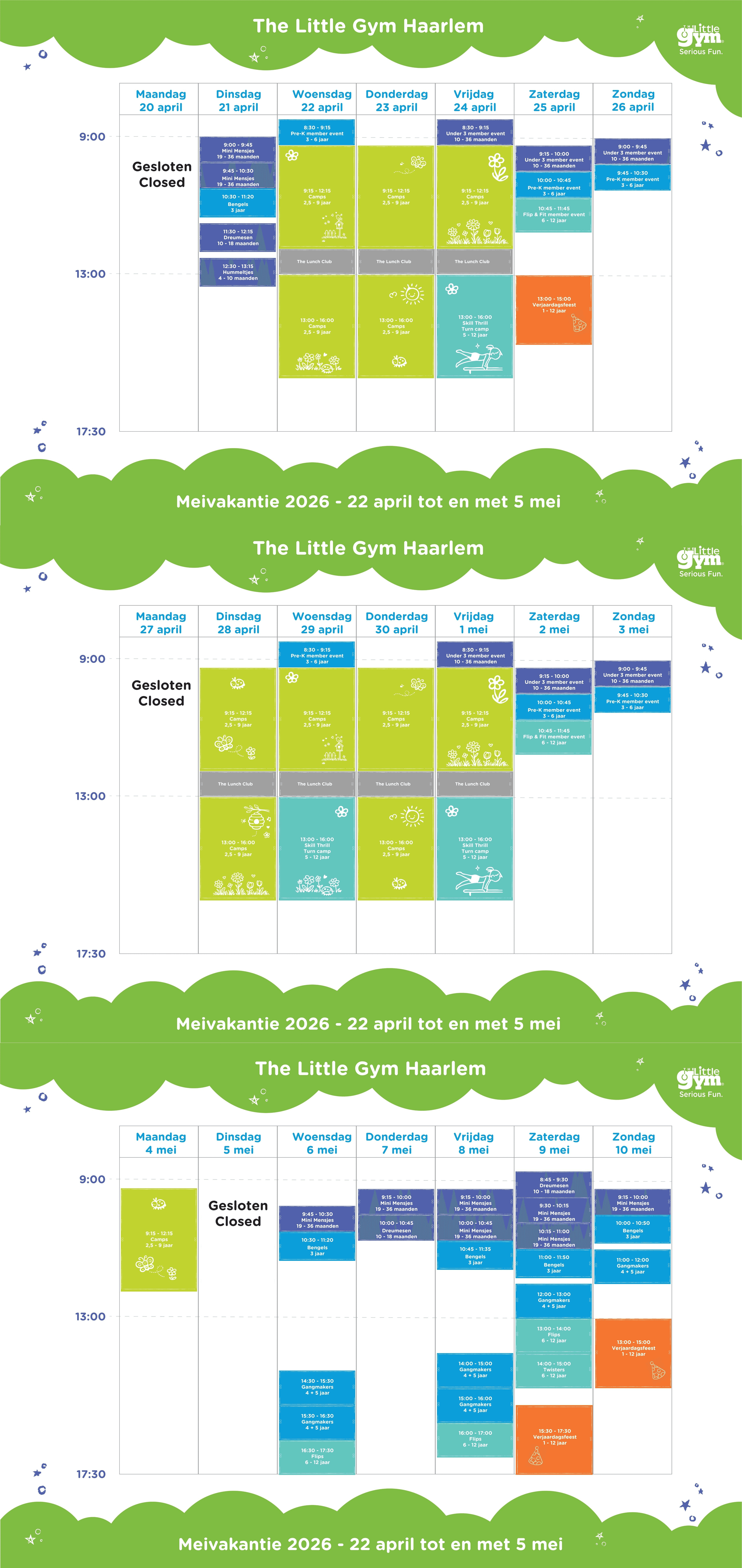 Our themed holiday programs can be booked for either half or full days and are open to both members and non-members. A three-hour camp costs €35 for members and €42 for non-members (excluding our special camps).